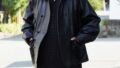 肩の傾斜や低く下げられたヨークの位置、アームホールの広さなど、細かなディテールを特異なバランスで仕上げたビッグシルエット。