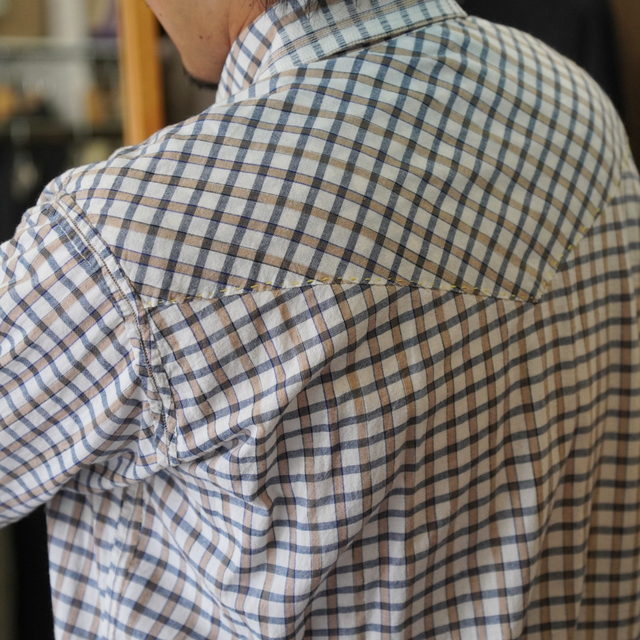 手縫いステッチやガゼット等、細かいディテールにも妥協が一切なく仕上げており、本格派のシャツ作りとデザイナーのマニアックな