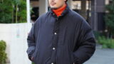 【デザイン】身頃、袖共に程よくゆとりを持たせて着丈はやや短めの設定。腰ポケットの細玉緑は手で綺麗に作られている。裾の細幅で繊細なゴムシャーリングのディテールも特徴。