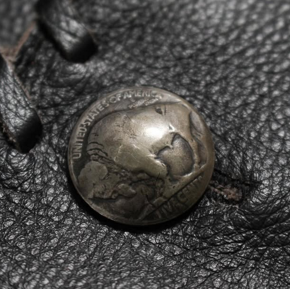 1913年から1938年に製造された5セント、通称「インディアン・ヘッド」をコンチョとして使用しています。