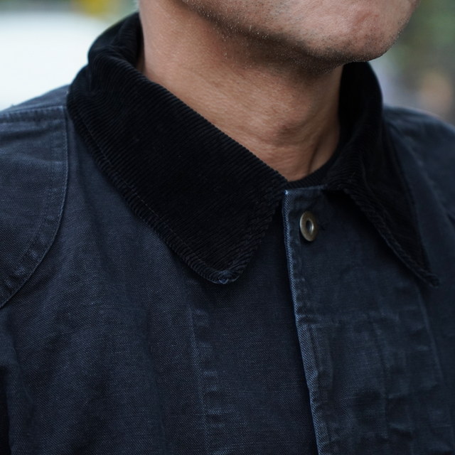 This is a reproduction of the fabric used in vintage workwear from the 1960s. The original 12oz fabric is woven from thick cotton and hemp, and the hemp is soaked in wax, so it will develop a crease with wear.