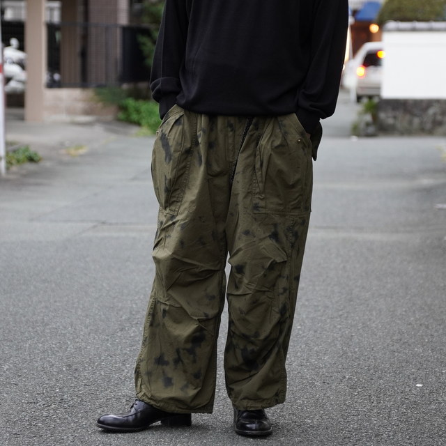 These classic pants feature an original Gurank camo pattern. They’re made from poplin fabric that replicates the jungle fatigue fabric from the early 60s. The silhouette from a diagonal view is similar to that of US ARMY OVERPANTS, and the material is based on jungle fatigue from the Non-Rip era, combining the best of both worlds!