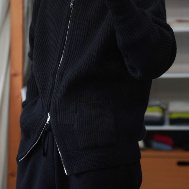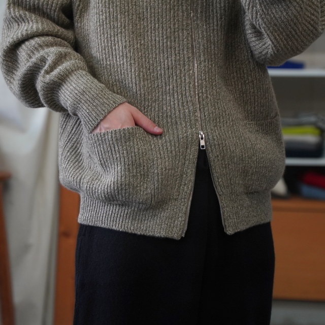 HERILLはカシミヤ100%の素材ですので、防寒性に優れすぎるためにアウターとしての需要も高く、その利点として外付けポケットをつけてアウター仕様にしている。