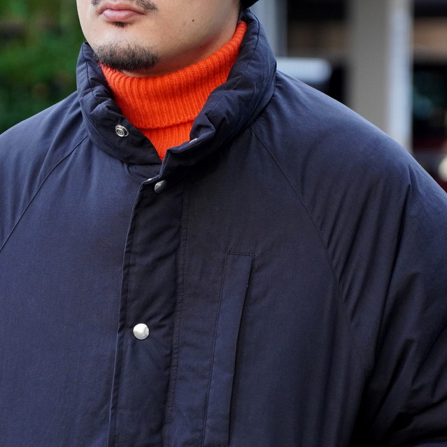 90年代のアウトドアブランドではない、カジュアルブランドが作るダウンステッチが無いダウンジャケットをベースにアレンジしています。ダウンの入れる分量感を各パーツごとに調整し、袖山を低くしながら傾斜をつけ、丸みのあるフォルムに仕上げていることが特徴です。