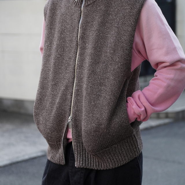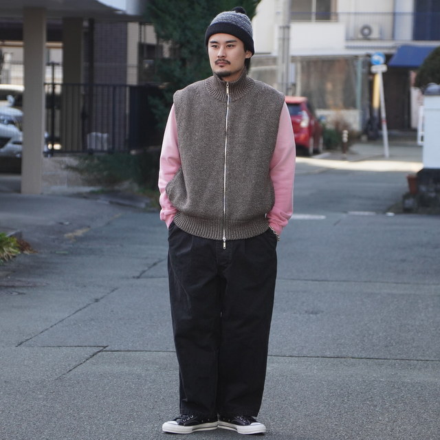 アームホールはゆとりがあり、シャツやカットソーはもちろん、スウェットやニットの上からも無理なくレイヤード可能。さらにジャケットやライトアウターの上に重ねたり、寒い時期にはインナーとしても活躍するなど、着方や季節を選ばない高い汎用性を備えています。