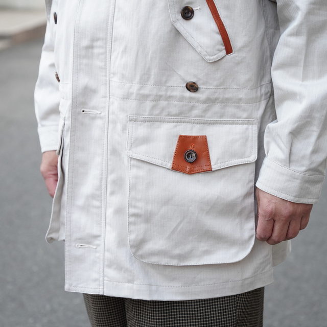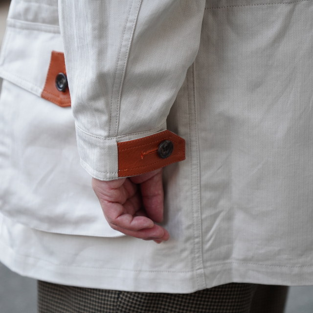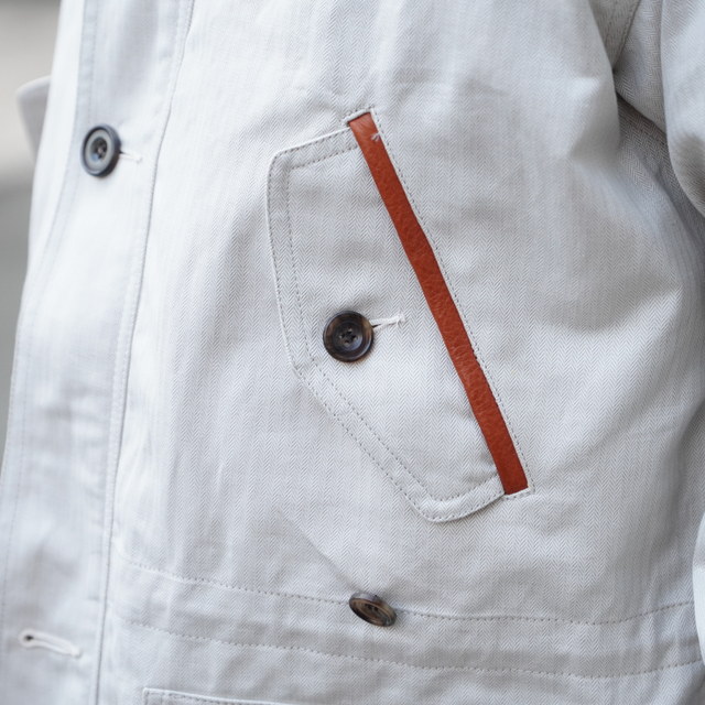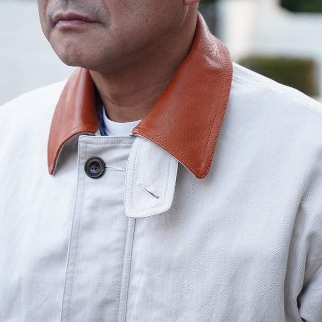 上衿にはイタリア、トスカーナのベジタブルタンニン鞣しの牛革を使用しています。