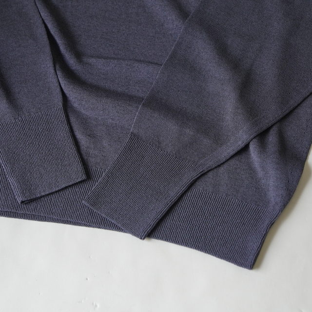 シンプルなクルーネックニットで、着用時の落ち感と程よい膨らみが良いバランスです。